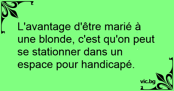 L'avantage d'être marié à une blonde, c'est qu'on peut se stationner dans un espace pour handicapé.