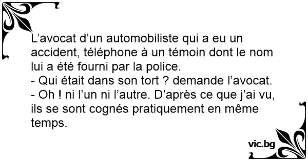 - Oh ! ni l’un ni l’autre. D’après ce que j’ai vu, ils se sont cognés pratiquement en même temps.