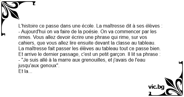 La maîtresse fait passer les élèves au tableau tout ce passe bien. Et arrive le dernier passage, c'est un petit garçon. Il lit sa phrase :
