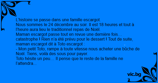 - Mon petit Toto, rampe à toute vitesse nous acheter une bûche de Noël. Tiens, voilà des sous pour payer.
