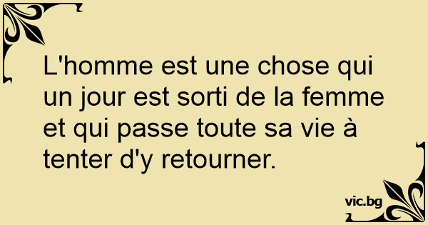 L'homme est une chose qui un jour est sorti de la femme et qui passe toute sa vie à tenter d'y retourner.