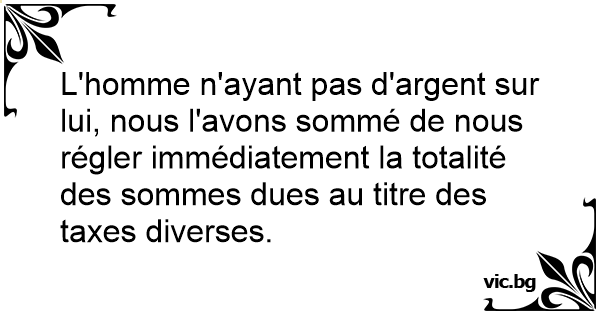 L'homme n'ayant pas d'argent sur lui, nous l'avons sommé de nous régler immédiatement la totalité des sommes dues au titre des taxes diverses.