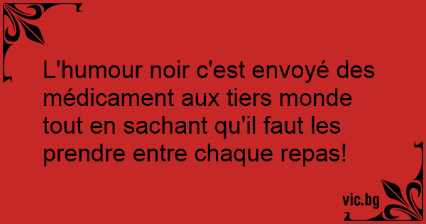L'humour noir c'est envoyé des médicament aux tiers monde tout en sachant qu'il faut les prendre entre chaque repas!