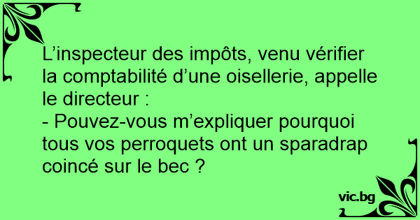 L’inspecteur des impôts, venu vérifier la comptabilité d’une oisellerie, appelle le directeur :