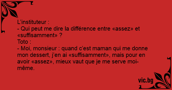 - Moi, monsieur : quand c’est maman qui me donne mon dessert, j’en ai «suffisamment», mais pour en avoir «assez», mieux vaut que je me serve moi-même.