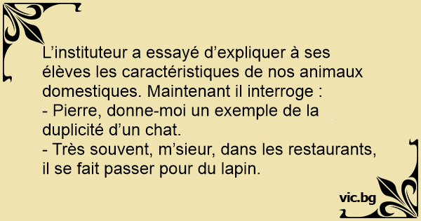 - Pierre, donne-moi un exemple de la duplicité d’un chat.
