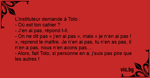 - Alors, fait Toto, si personne en a, j’suis pas pire que les autres !