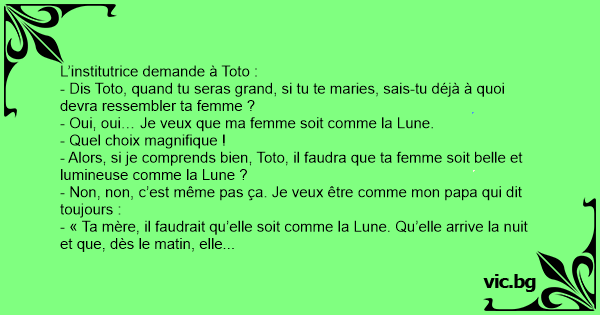 - Alors, si je comprends bien, Toto, il faudra que ta femme soit belle et lumineuse comme la Lune ?