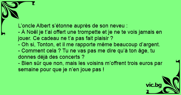 - Bien sûr que non, mais les voisins m’offrent trois euros par semaine pour que je n’en joue pas !