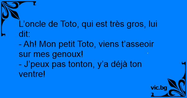 - Ah! Mon petit Toto, viens t’asseoir sur mes genoux!