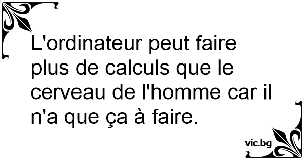 L'ordinateur peut faire plus de calculs que le cerveau de l'homme car il n'a que ça à faire.