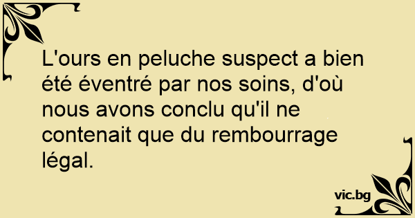 L'ours en peluche suspect a bien été éventré par nos soins, d'où nous avons conclu qu'il ne contenait que du rembourrage légal.