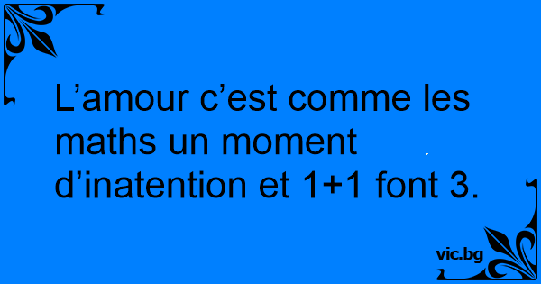 L’amour c’est comme les maths un moment d’inatention et 1+1 font 3.