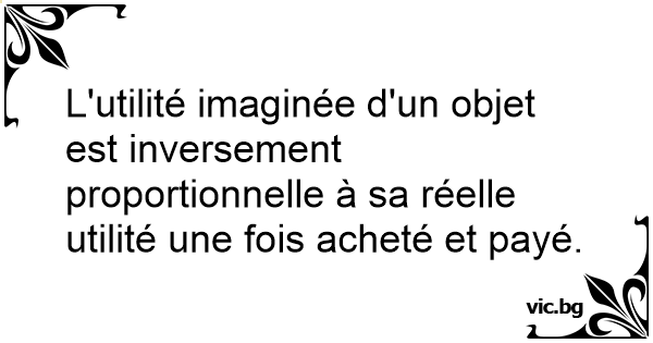 L'utilité imaginée d'un objet est inversement proportionnelle à sa réelle utilité une fois acheté et payé.