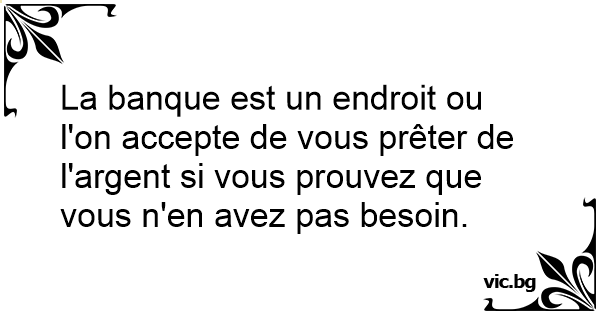 La banque est un endroit ou l'on accepte de vous prêter de l'argent si vous prouvez que vous n'en avez pas besoin.