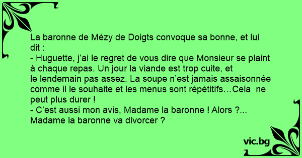 La baronne de Mézy de Doigts convoque sa воnnе, et lui dit :