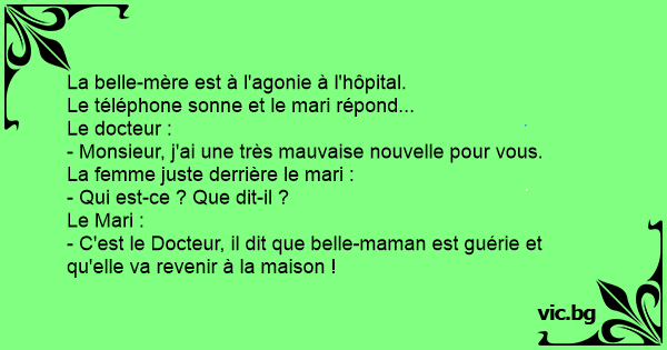 - C'est le Docteur, il dit que belle-maman est guérie et qu'elle va revenir à la maison !