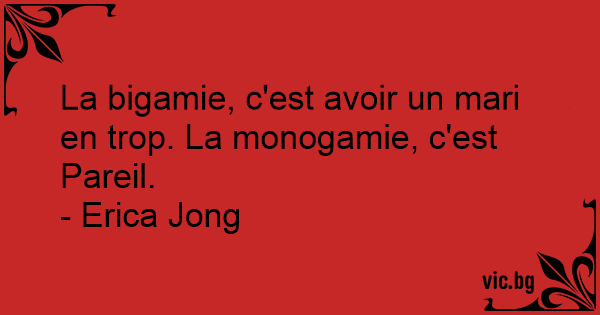 La bigamie, c'est avoir un mari en trop. La monogamie, c'est