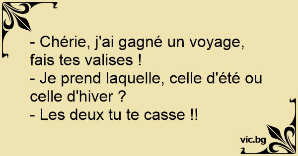 - Chérie, j'ai gagné un voyage, fais tes valises !