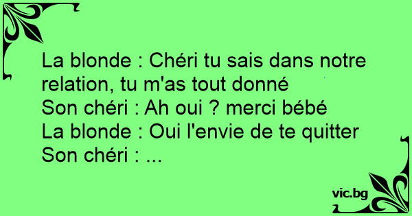 La blonde : Chéri tu sais dans notre relation, tu m'as tout donné