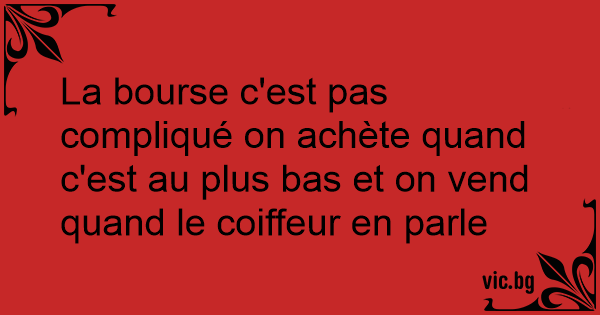 La bourse c'est pas compliqué on achète quand c'est au plus bas et on vend quand le coiffeur en parle