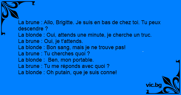 La brune : Allo, Brigitte. Je suis en bas de chez toi. Tu peux descendre ?