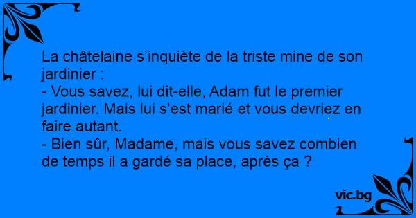 La châtelaine s’inquiète de la triste mine de son jardinier :