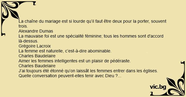 J’ai toujours été étonné qu’on laissât les femmes entrer dans les églises. Quelle conversation peuvent-elles tenir avec Dieu ?