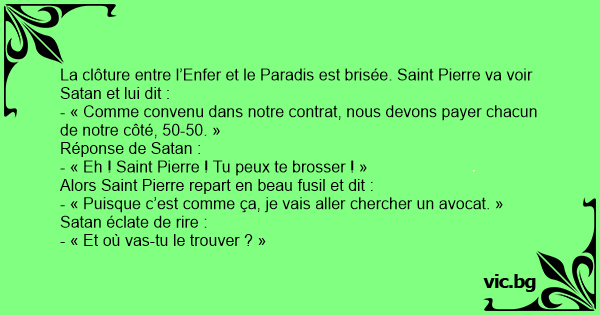 La clôture entre l’Enfer et le Paradis est brisée. Sаinт Pierre va voir Sатаn et lui dit :