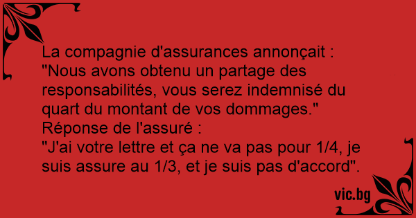 "J'ai votre lettre et ça ne va pas pour 1/4, je suis assure au 1/3, et je suis pas d'accord".