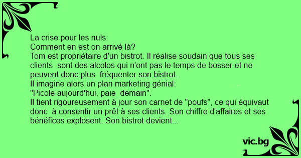 Confiants à l'égard de leur banquier et avides de hauts rendements, les clients ne captent pas que ces titres qui leur sont fourgués comme "obligations AA", ne sont en fait que les poufs d'alcolos feignasses.
