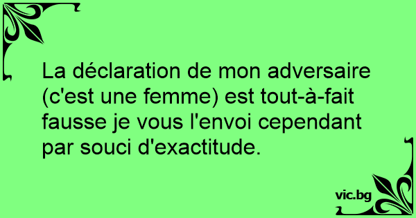 La déclaration de mon adversaire (c'est une femme) est tout-à-fait fausse je vous l'envoi cependant par souci d'exactitude.