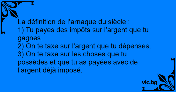 3) On te taxe sur les choses que tu possèdes et que tu as payées avec de l’argent déjà imposé.