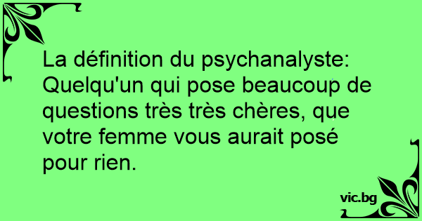 La définition du psychanalyste: Quelqu'un qui pose beaucoup de questions très très chères, que votre femme vous aurait posé pour rien.