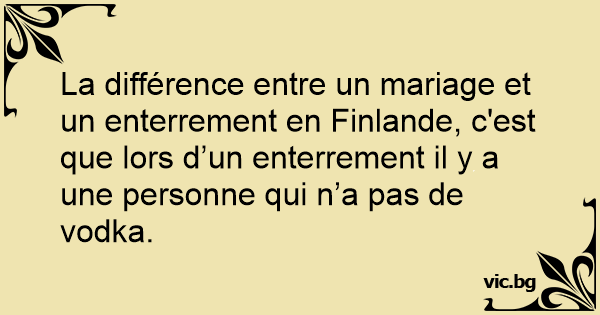 La différence entre un mariage et un enterrement en Finlande, c'est que lors d’un enterrement il y a une personne qui n’a pas de vоdка.