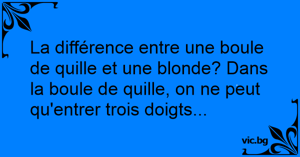 La différence entre une boule de quille et une blonde? Dans la boule de quille, on ne peut qu'entrer trois doigts...