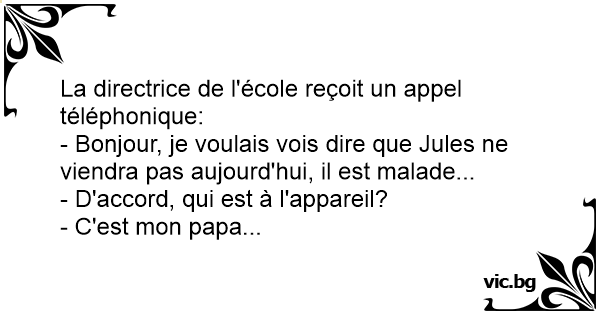 - Bonjour, je voulais vois dire que Jules ne viendra pas aujourd'hui, il est malade...