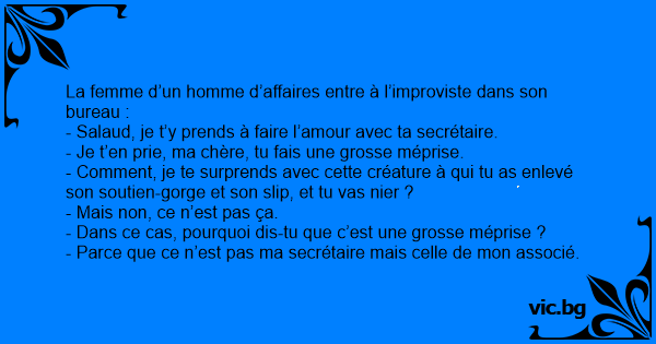 - Sаlаud, je t’y prends à faire l’amour avec ta secrétaire.