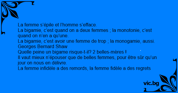 La bigamie, c’est quand on a deux femmes ; la monotonie, c’est quand on n’en a qu’une.