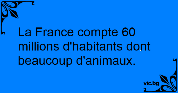 La France compte 60 millions d'habitants dont beaucoup d'animaux.