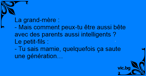 - Tu sais mamie, quelquefois ça saute une génération…