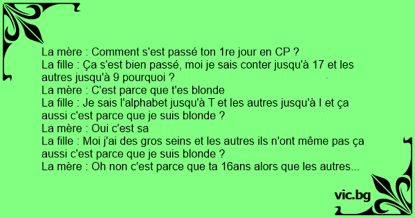 La fille : Moi j'ai des gros seins et les autres ils n'ont même pas ça aussi c'est parce que je suis blonde ?