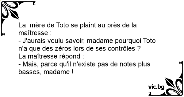 - J'aurais voulu savoir, madame pourquoi Toto n'a que des zéros lors de ses contrôles ?