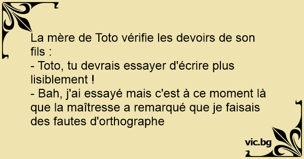 - Toto, tu devrais essayer d'écrire plus lisiblement !