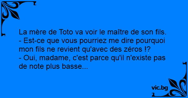 - Est-ce que vous pourriez me dire pourquoi mon fils ne revient qu'avec des zéros !?