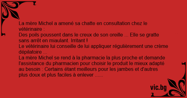 La mère Michel a amené sa сhатте en consultation chez le vétérinaire :