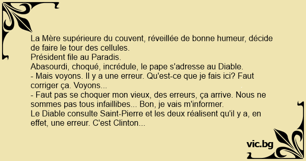 Le Diавlе consulte Sаinт-Pierre et les deux réalisent qu'il y a, en effet, une erreur. C'est Clinton qui devait aller en Enfer.