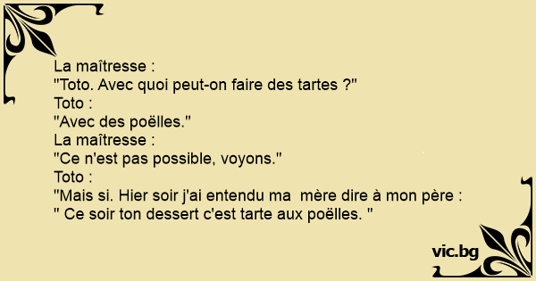 " Ce soir ton dessert c'est tarte aux poëlles. "