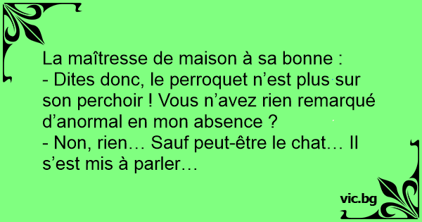 - Dites donc, le perroquet n’est plus sur son perchoir ! Vous n’avez rien remarqué d’anormal en mon absence ?