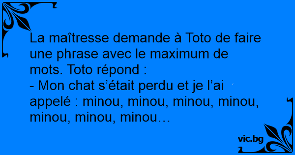 La maîtresse demande à Toto de faire une phrase avec le maximum de mots. Toto répond :